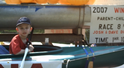 As race day approached, I found out there was a parent-child division so I decided I was take our oldest son with me. He had already been out with me several times in our Loon 138 kayak and he enjoyed it. With its extra large cockpit, I was able to seat him in front of me on a block of minicell foam and still have plenty of room.