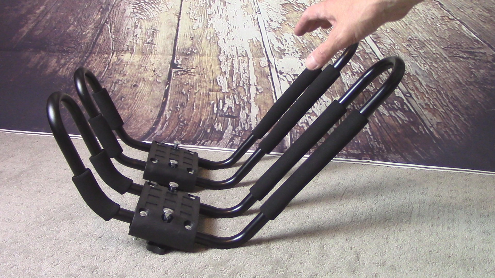 And here are the J-bars/kayak cradles. They are a pain-in-the-ass to put together with nothing but a diagram rather than instructions to help you put them together, but if you compare them as $50 for 2 sets vs. $199 per 1 set of Thule, you’ll be happy you made your fingers bleed a little bit to save a ton of money.