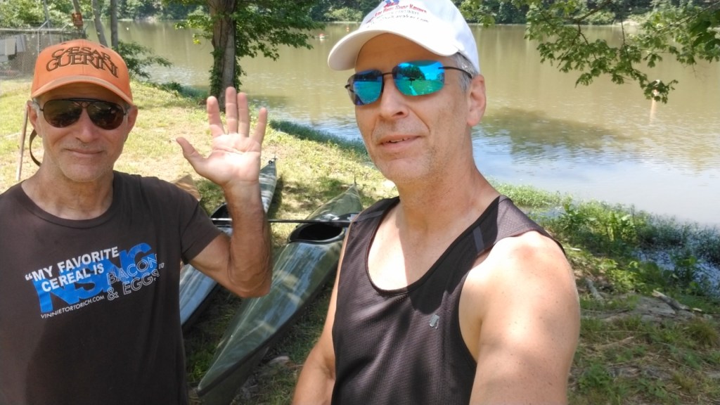 So we arranged to meet at my local boat ramp for a demo paddle today and I was also joined by my friend, mentor, and well-known ultra athlete and health & fitness podcaster, Vinnie Tortorich.
