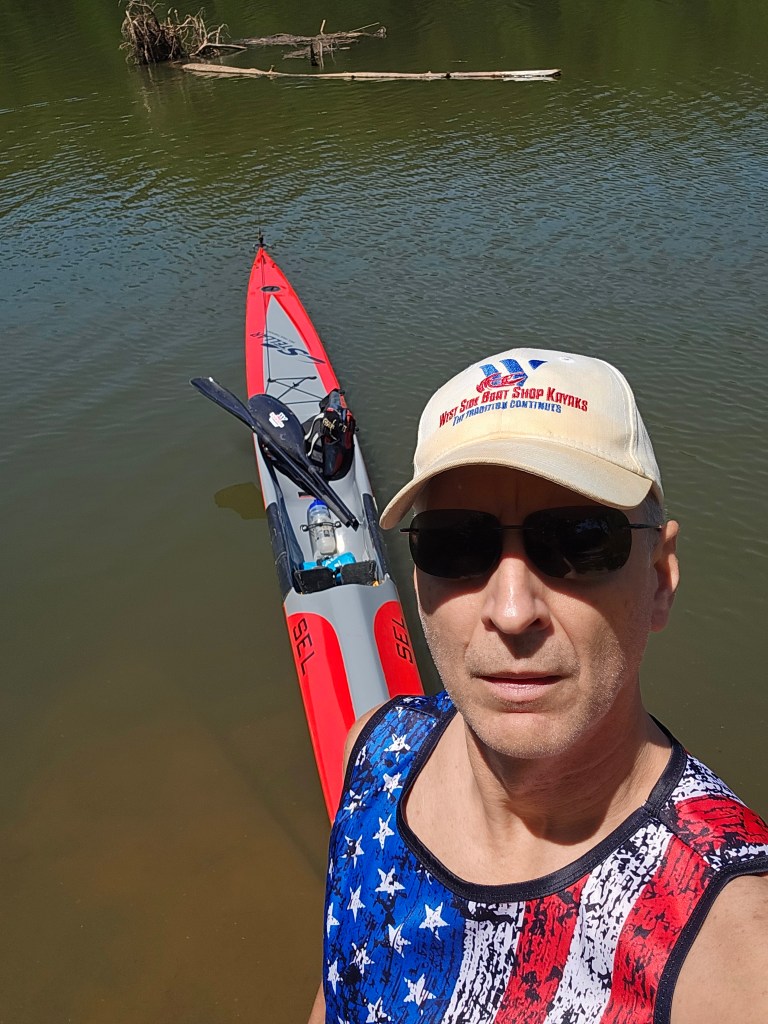 I did some mountain biking on Saturday (I am woefully out-of-shape for mountain biking,) did a 10-mile flatwater training run in my Stellar SEL yesterday, and today got in 15 more paddling miles with my Prijon Seayak.